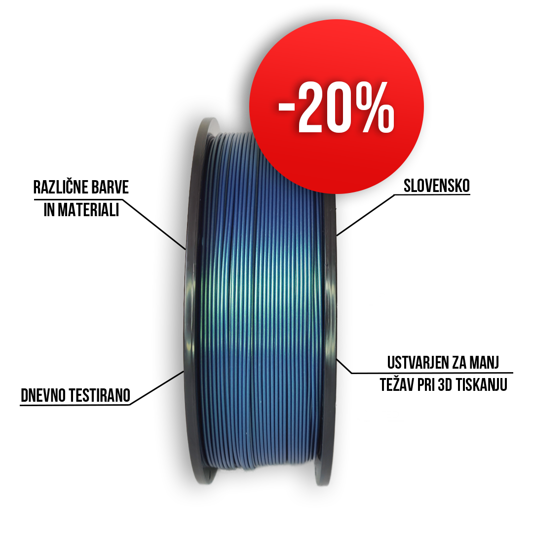 Naše domače 3WAY filamente testiramo na širokem naboru različnih 3D tiskalnikov, kar zagotavlja izjemno kompatibilnost z vsakim tiskalnikom. Z našimi filamenti boste dosegli odlične rezultate, mi pa bomo še naprej skrbeli, da bo možnost mašenja šobe kar se da majhna. Kako nam to uspeva? Z zagotavljanjem izredne kakovosti vsakega filamenta in skrbnim nadzorom proizvodnje, ki je odsev lokalne slovenske kvalitete. Naši 3WAY filamenti so ponosno proizvedeni in pakirani ravno tu, v srcu Slovenije.